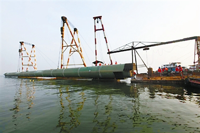 7月27日,徐州駱馬湖水源地第三標段施工現(xiàn)場,中鐵上海局市政公司員工冒著酷暑在湖中心吊裝最后一節(jié)內(nèi)徑2.6米、長80.4米、壁厚28毫米的原水取水管道。大口徑長距離鋼管引水管線最后一節(jié)的就位,標志著徐州駱馬湖水源地原水管全線貫通。 該工程將有效提升徐州市城市供水能力,改善百萬市民的用水需求和質(zhì)量,同時對推進特大型區(qū)域性中心城市戰(zhàn)略發(fā)展意義重大。